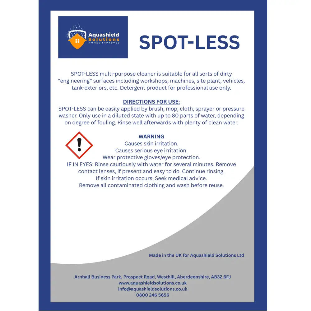 SPOT-LESS is suitable for deep cleaning workshops, machines, site plant, vehicles and a multitude of other engineering or trades related machinery. This detergent is primarily for professional use only.